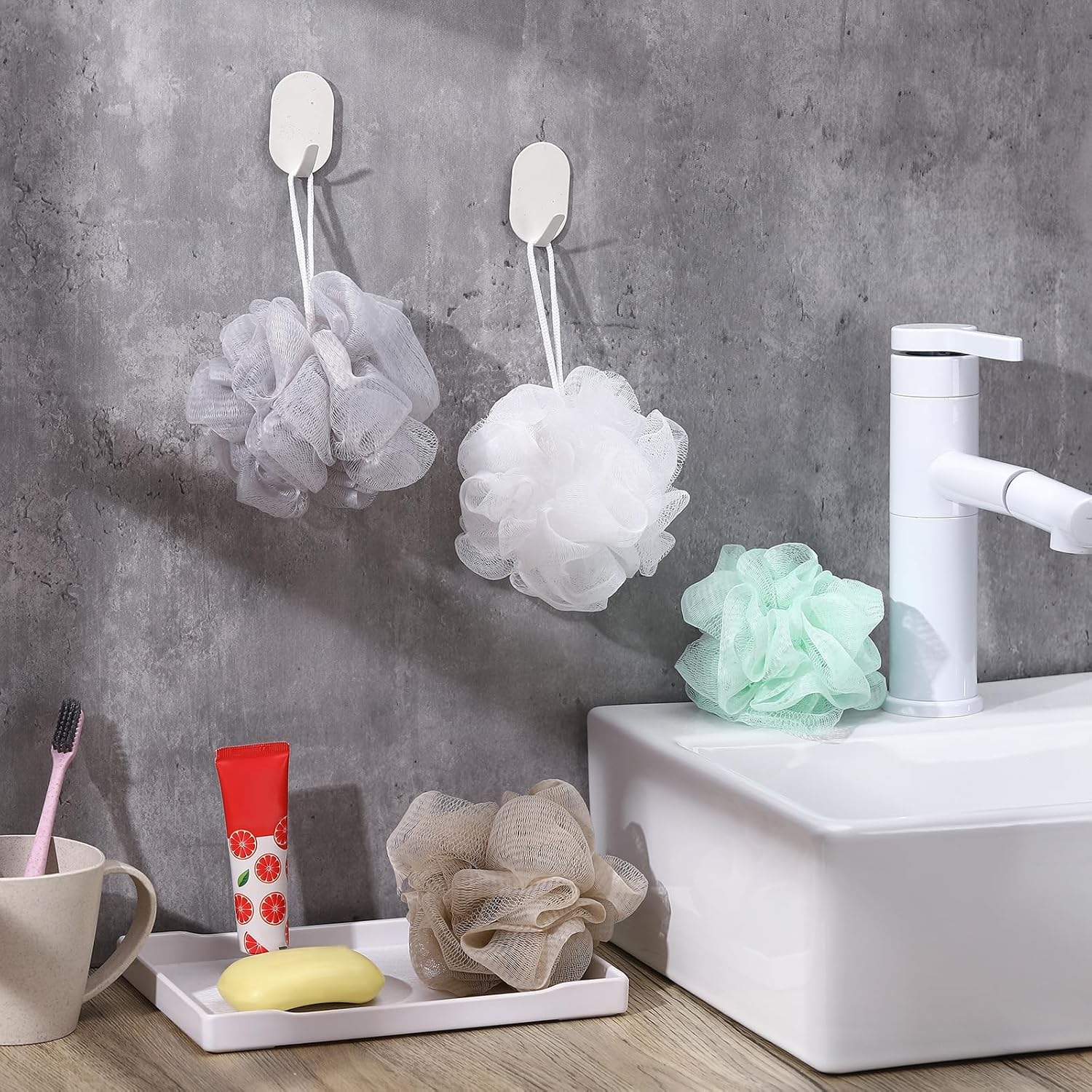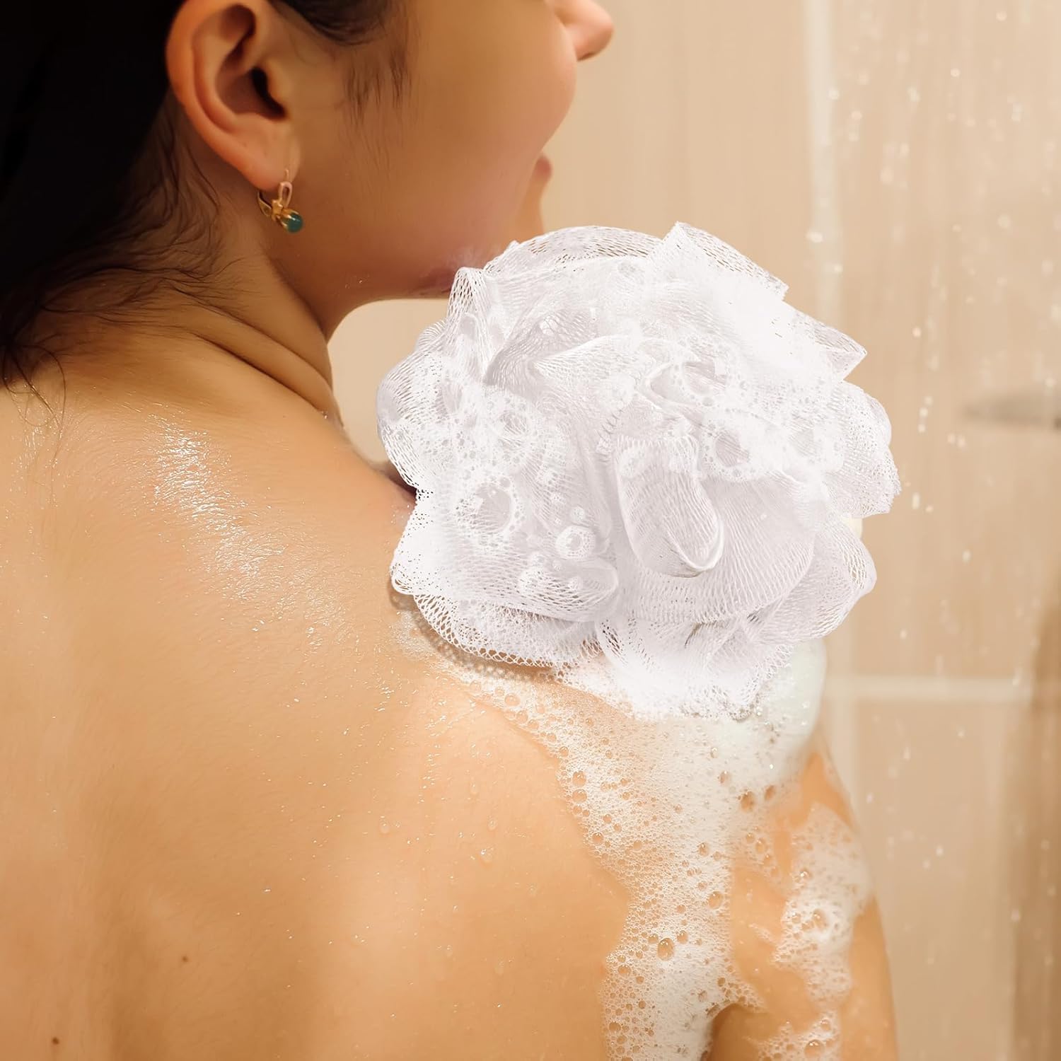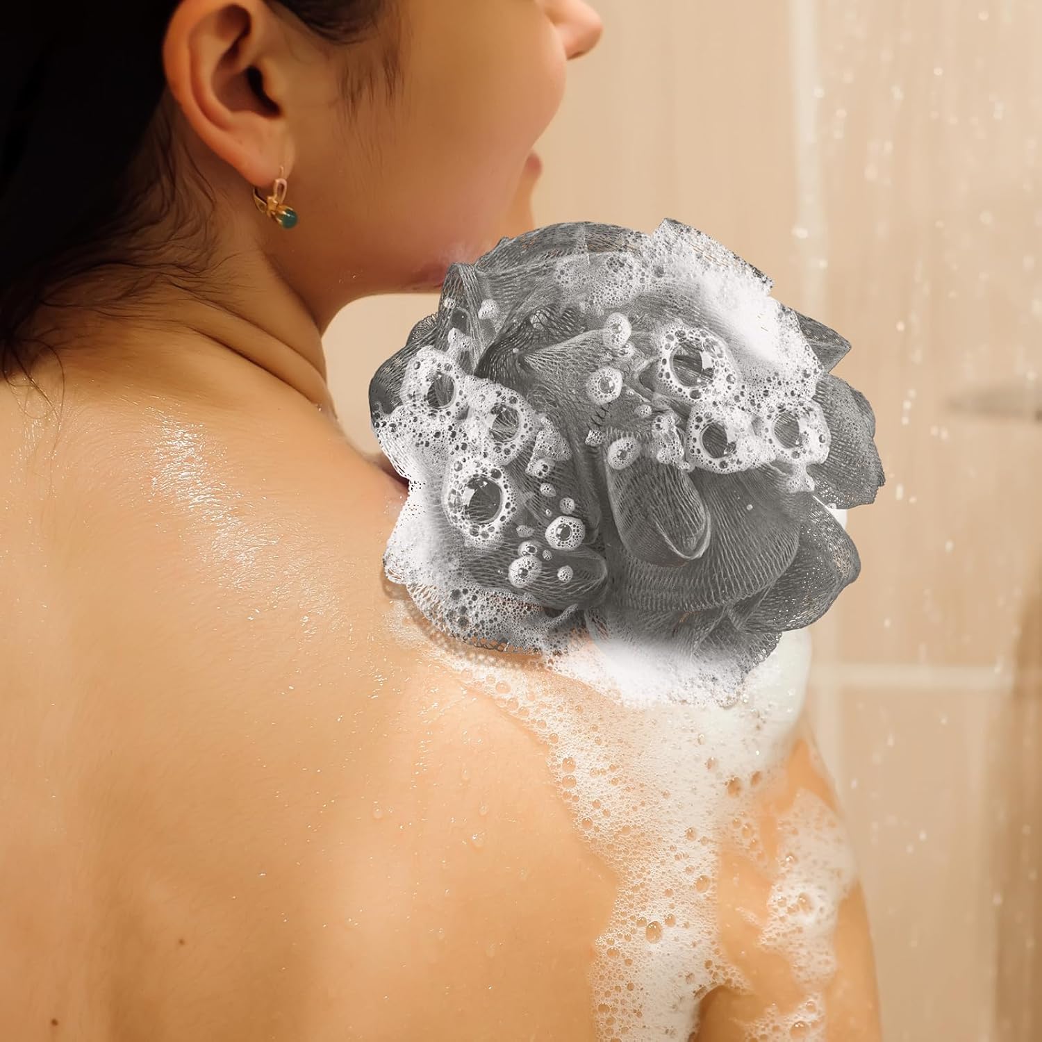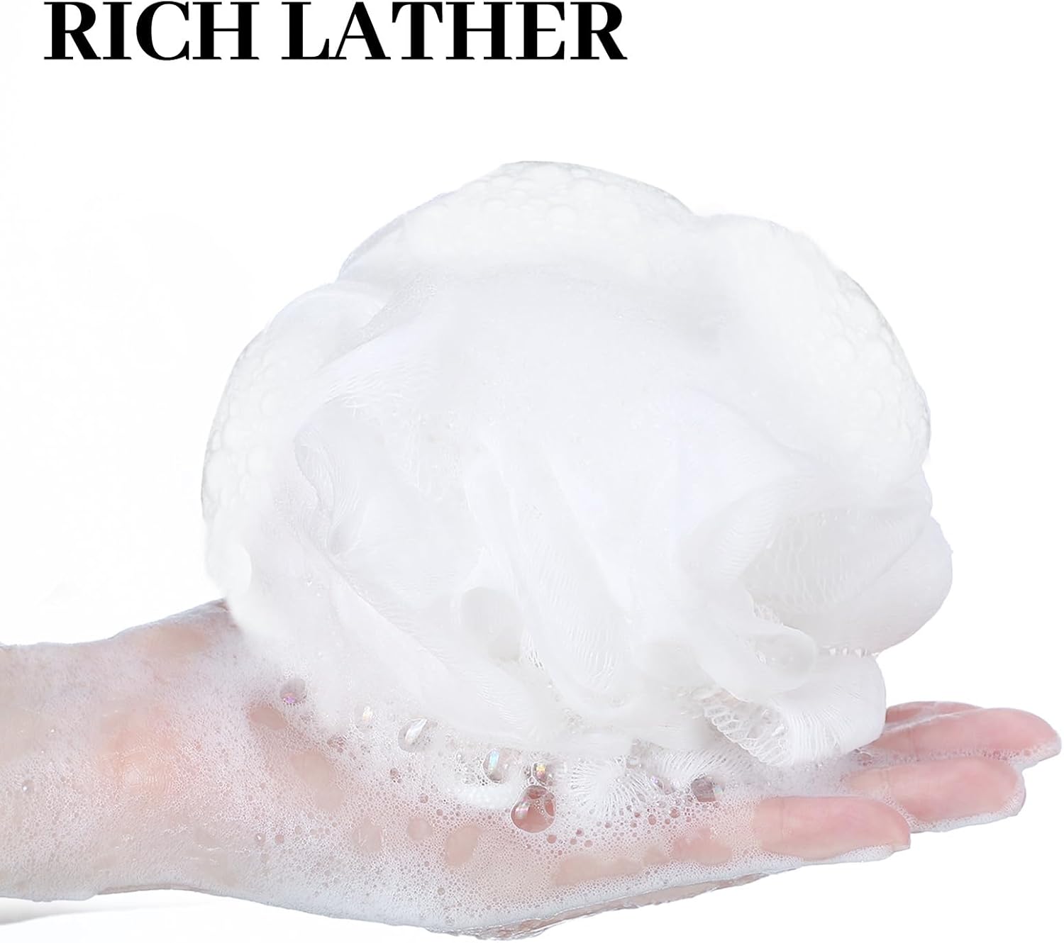 - Quick Foaming Design: using the bath sponge pouf ball allows a creation of a large number of bubble baths, enhancing your bathing experience; Once done, you'll find it easy to clean and hang for drying and next use