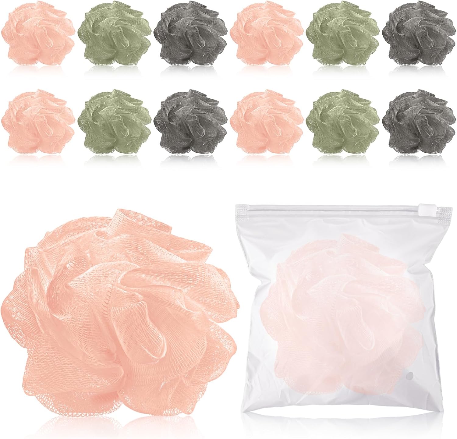 - Travel Loofah with Case: comes with 12 travel size loofahs and 12 resealable travel bags; The additional bags not only ensure your loofahs are kept clean and also aid in easy organization of your stuff while on the move; You can use them for your daily life or share them with your family and friends