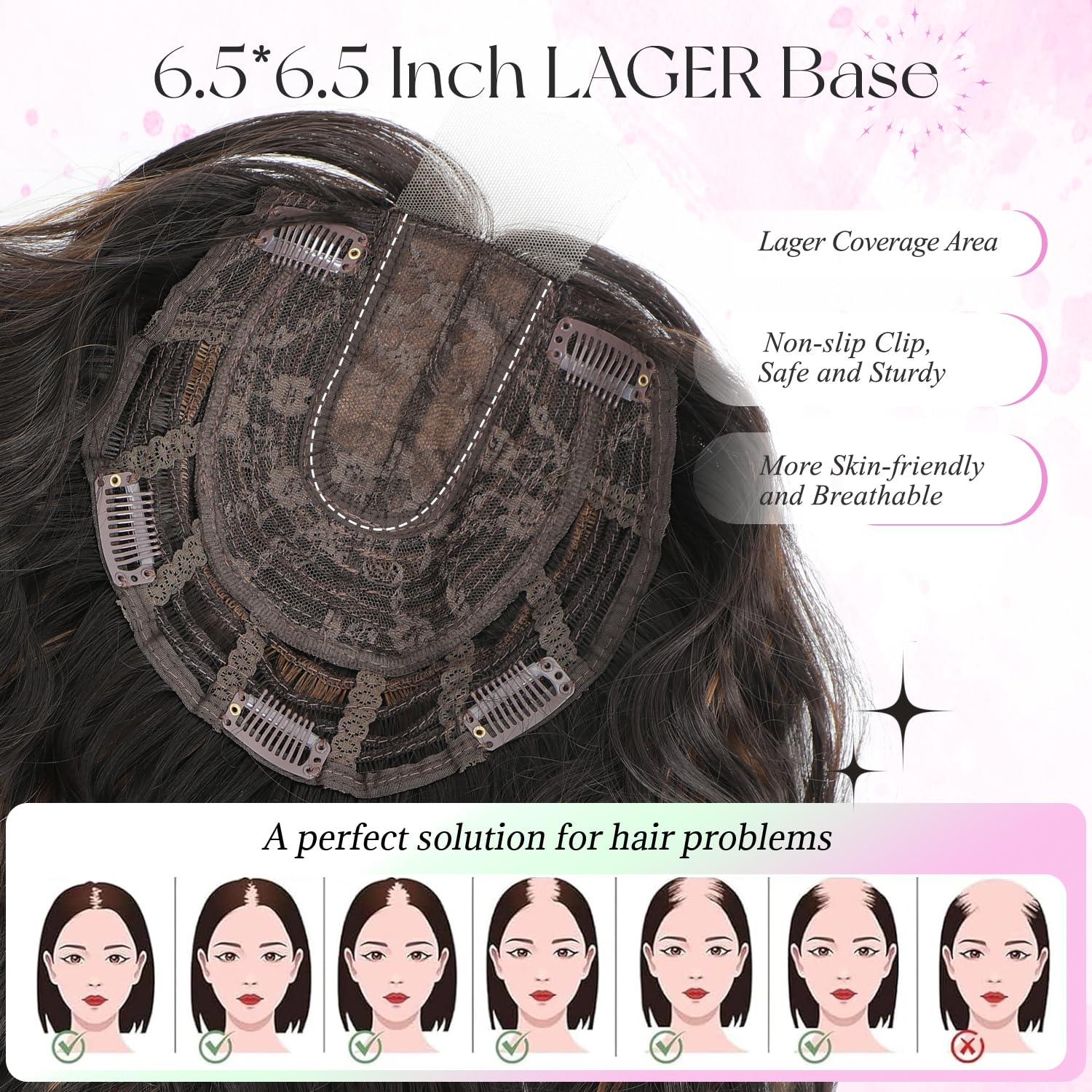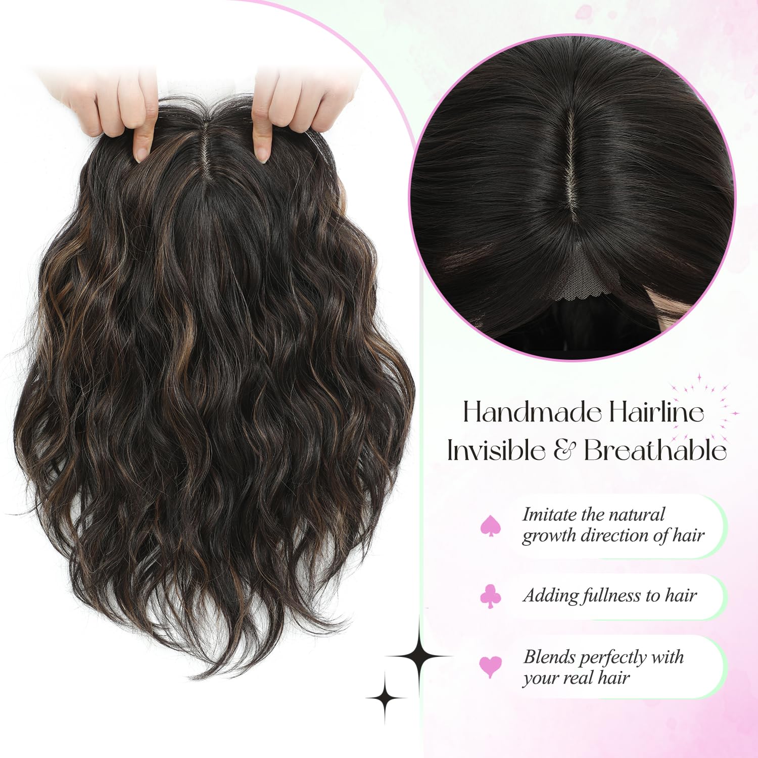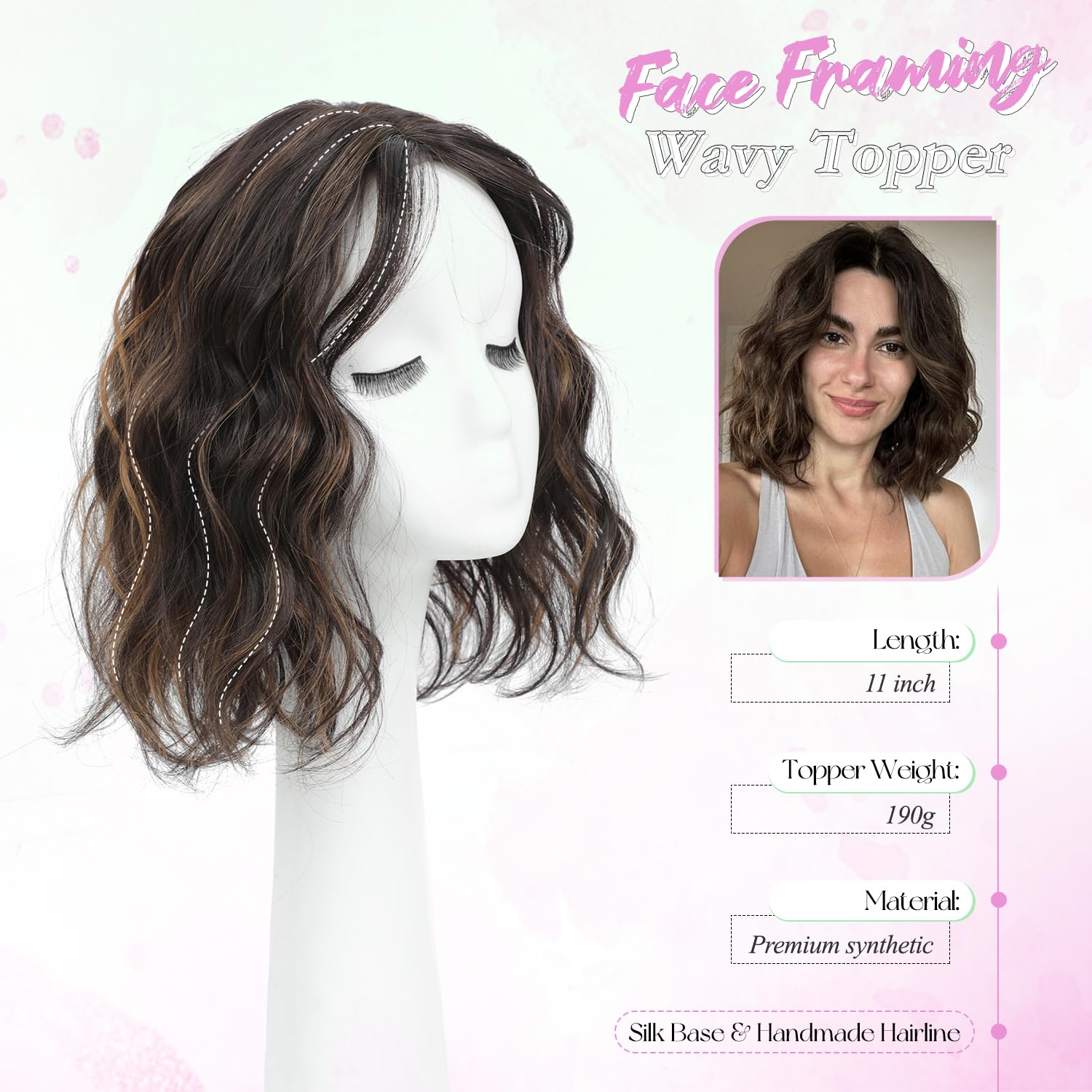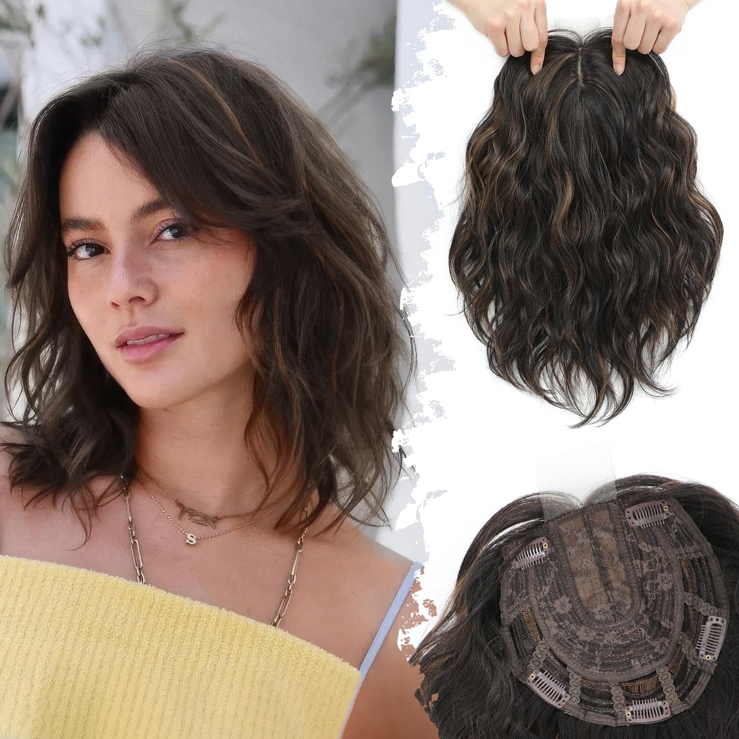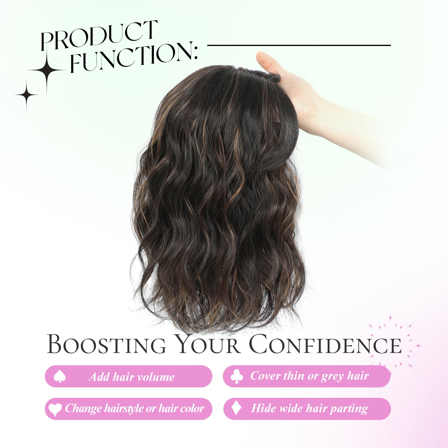 UDU Short Wavy Hair Topper for Women, 11Inch Lightweight & Breathable Synthetic Wiglet for Volume and Gray Hair Coverage, Heat Resistant Natural Hairpiece for Summer Look