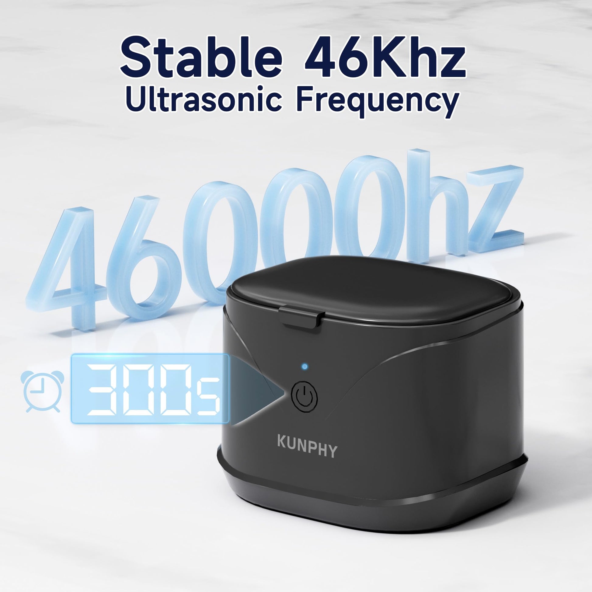 Ultrasonic Retainer Cleaner, KUNPHY 46KHz Professional Ultrasonic Cleaner 7.5Oz, Retainer Cleaner Machine for Dentures, Braces, Aligner, Dental Appliances (Black)