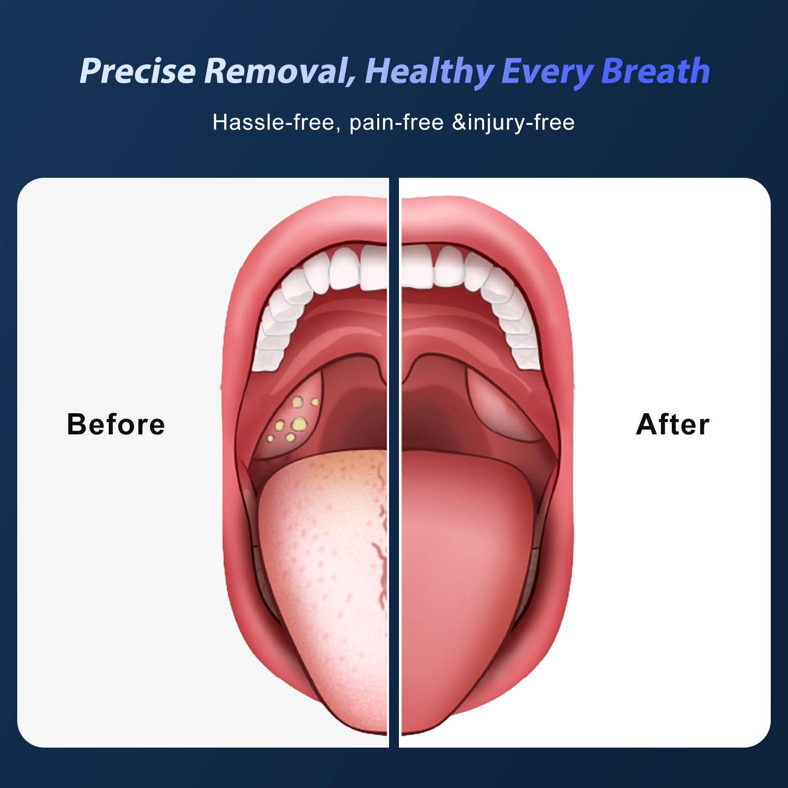 - Enjoy Benefits of Electric Tonsil Stone Remover: Experience a quick, easy, and painless way to remove tonsil stones with our electric vacuum tonsil stone remover. Designed with high-quality materials and recommended by dentists, it utilizes vacuum adsorption technology for a 99.9% effective and comfortable at-home extraction.