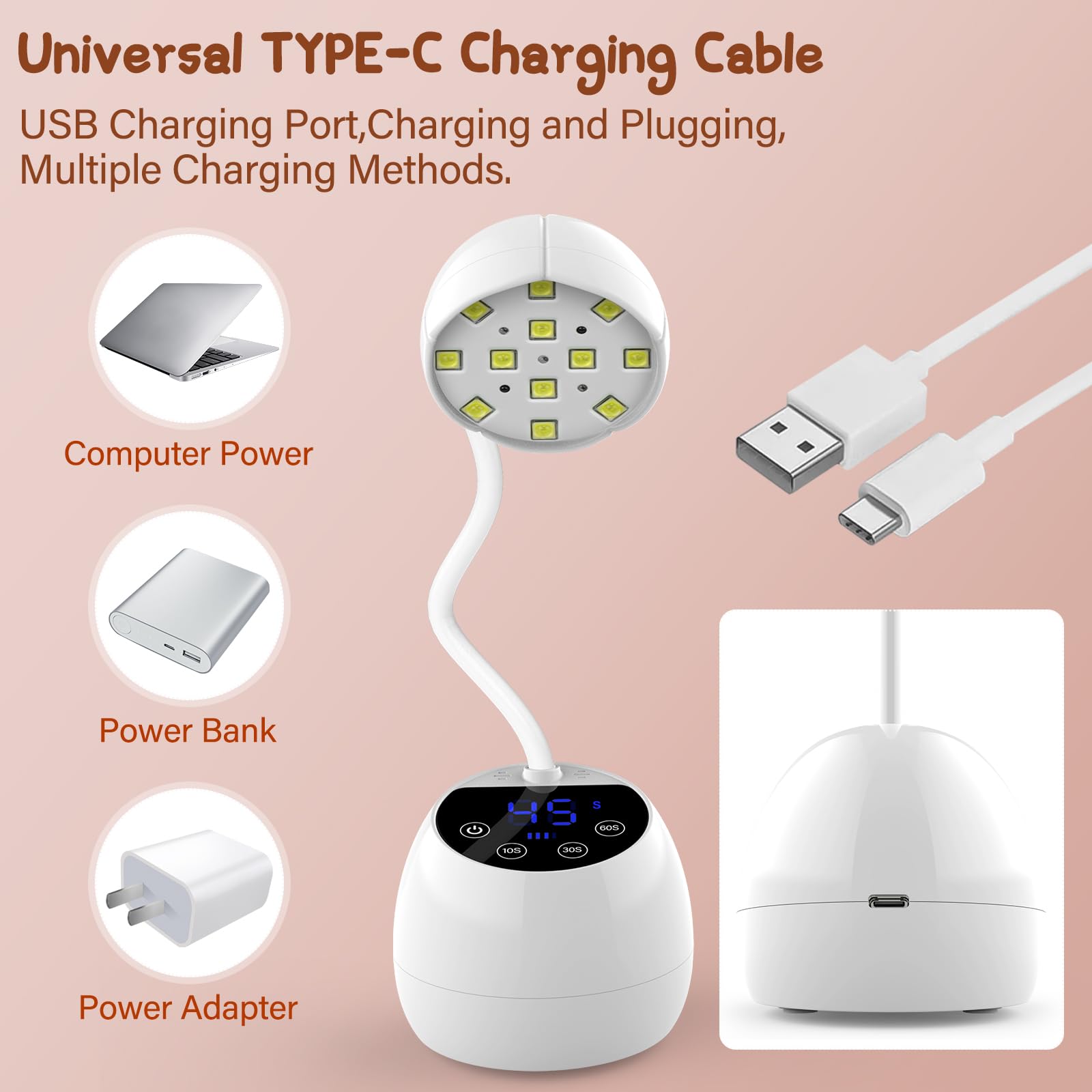 - WHAT YOU GET & PERFECT GIFT: 1 x Mini UV LED Nail Lamp,1 x USB Cable,1 x manicure instructions,this portable led nail lamp is great ideal gift for Christmas, Valentine's Day, Birthday, Wedding Anniversary, Party and so on.suitable for beginners and professionals in family or salon use,Please enjoy a salon experience with your friends and family at home.
