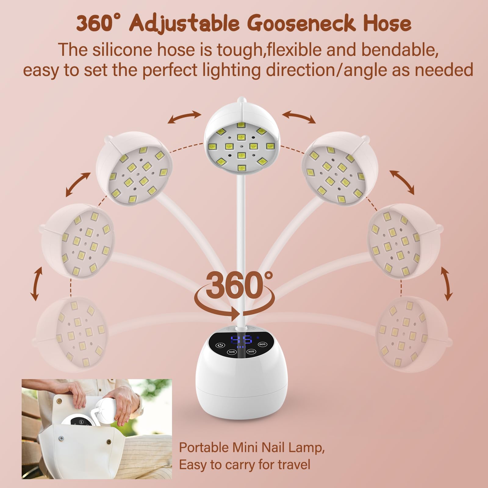 UV LED Nail Lamp Cordless 36W Mini UV Light for Gel X Nails Tips,Portable Hands Free Flash Cure Light,USB Rechargeable Nail Dryers with Sensor & 4 Timers,Rotatable Gooseneck Manicure Gel Polish Lamp