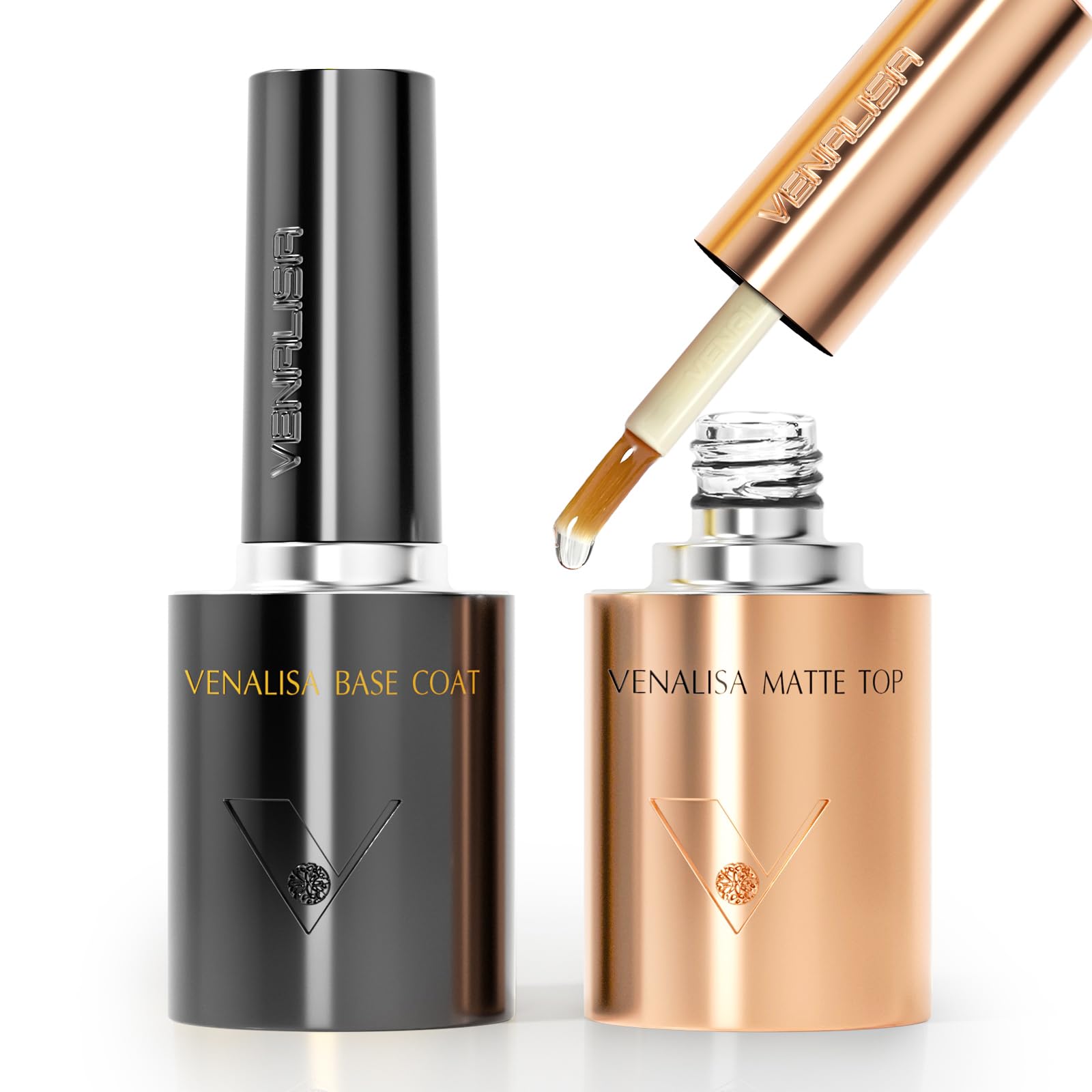 VENALISA 2 Pcs No Wipe Matte Gel Top Coat and Base Coat Set- Matte Top Coat Gel Nail Polish Kit, Soak Off Nail Art Home and Professional Manicure