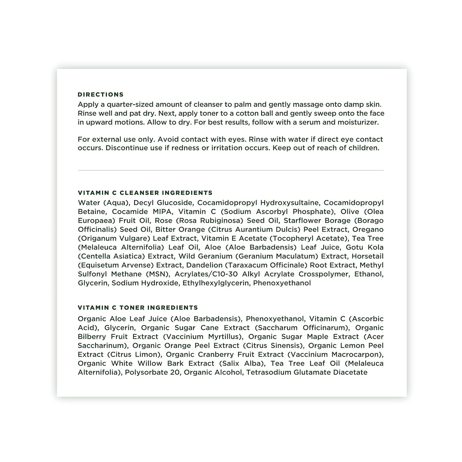 - A fresh, clear start awaits. The Vitamin C Cleanser gently removes impurities, brightens, and moisturizes. The Vitamin C Toner lifts away excess oil, makeup, and residue.