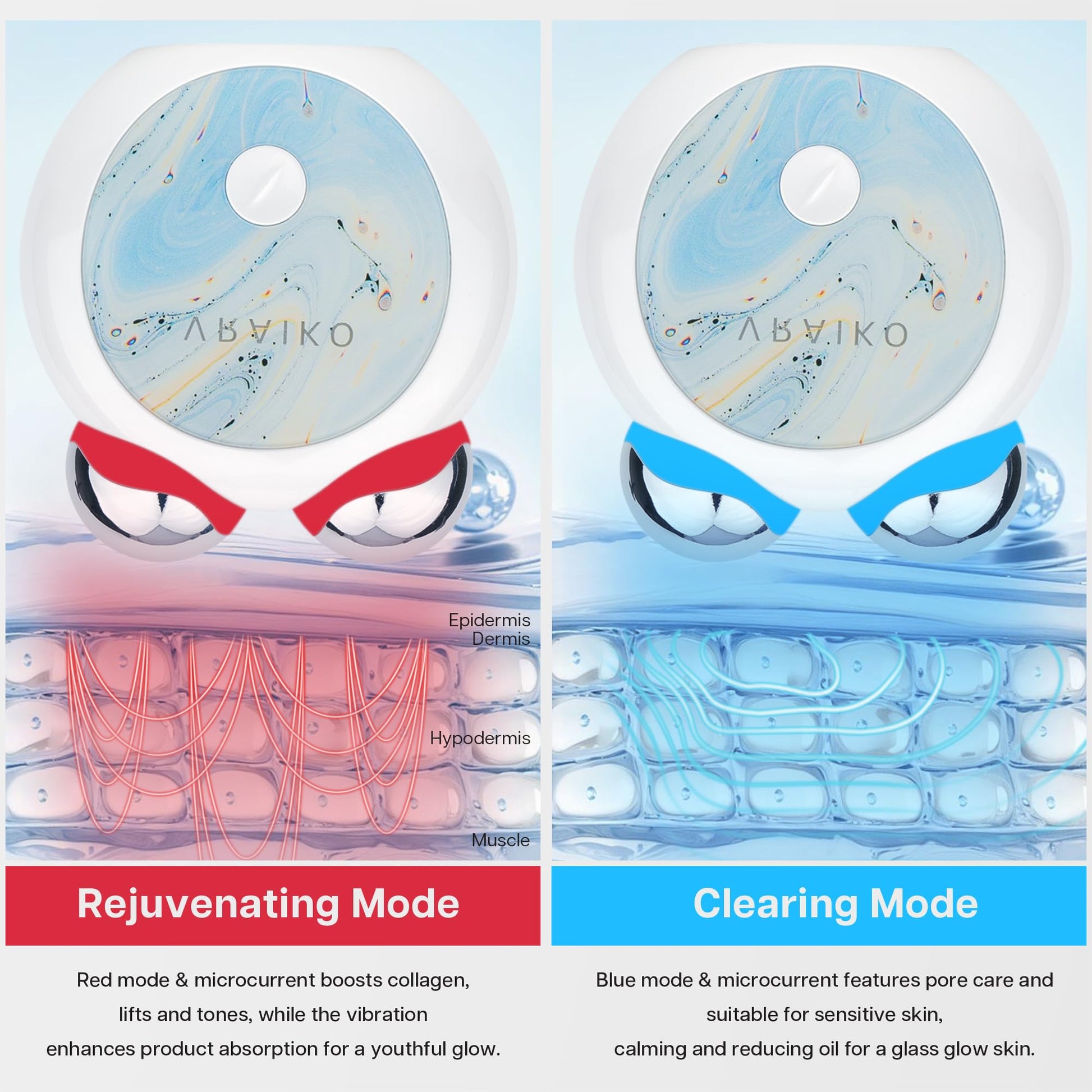- 【Versatile Design for Every Need】With two different modes to target different skin concerns, it also features the adaptability to your routine. Simply press the universal button to switch between the rejuvenating-mode and the clearing-mode, tailoring your routine based on your preferences.