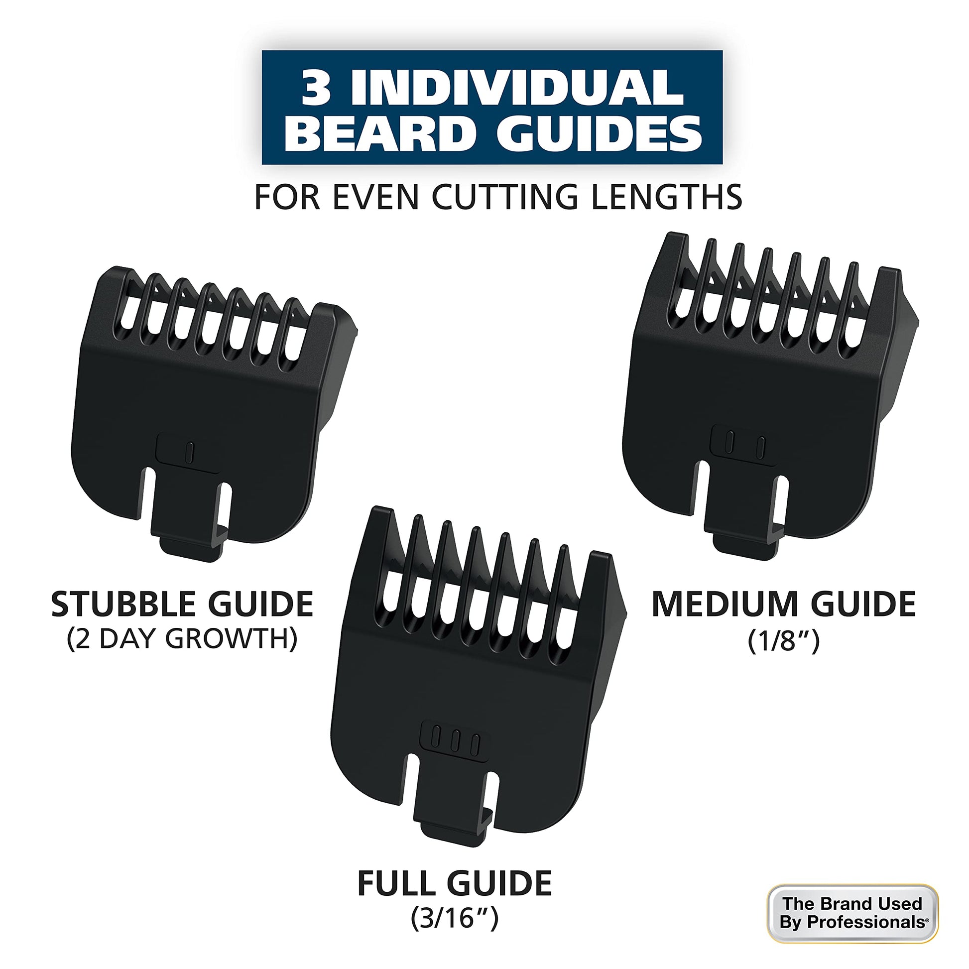 - 9 Piece Grooming Kit - Features 3 individual beard combs and a 5-position adjustable guide comb for various cutting lengths from 1/16” to 1/2"; Our beard guards vary in length from stubble to short & clean, to thick & even