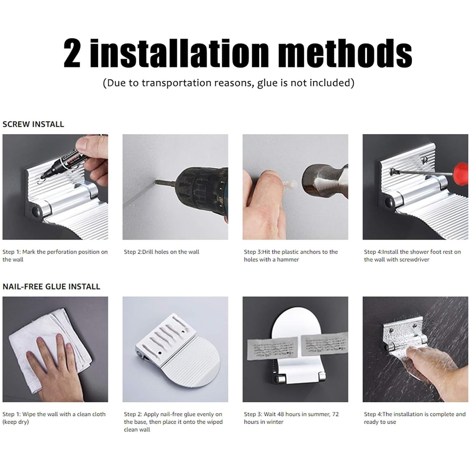 - Heavy-Duty Screw Installation – The thickened load-bearing bracket ensures enhanced safety and weight support, offering a stable platform for foot care or leg shaving. Equipped with 2 included stainless steel screws, the footrest mounts securely to any tiled bathroom wall, providing a firm and reliable hold.