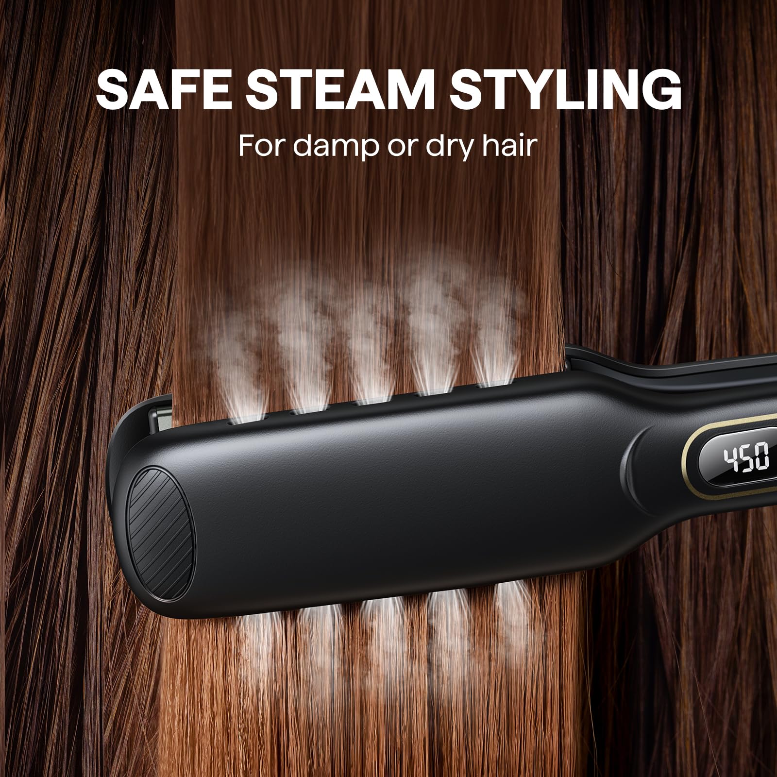 Wavytalk Wet to Straight Hair Straightener, Titanium 1.75 Inch Vent Sesh Wide Flat Iron, Straightener for Damp or Dry Hair with Dual Voltage Leave Silky & Smooth, Black