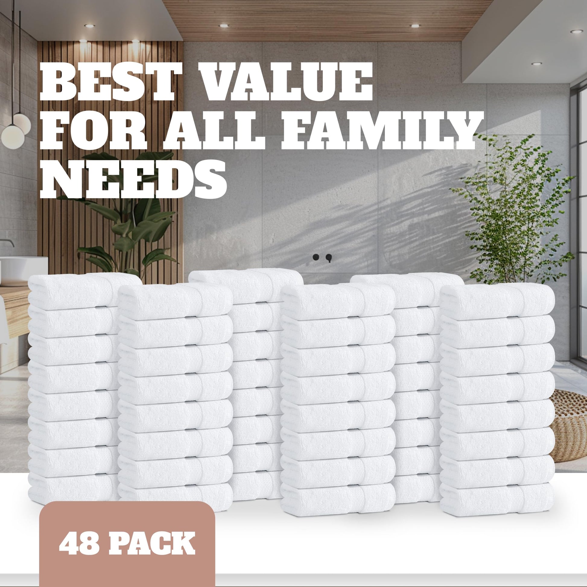 - Value Bundle - Our bulk bath towels set transform your bathroom into an oasis of comfort enhancing your after bath experience. Use these 48 cotton quick-drying washcloths for cleaning face or body