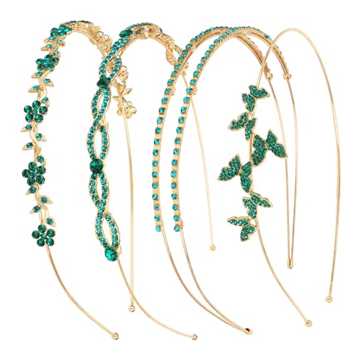 Wecoe 4 Pack Rhinestone Headband for Women and Girls, Flower Wedding Headband, Bridal Shower, Party, Prom, Cosplay, Hair Accessories, Gifts