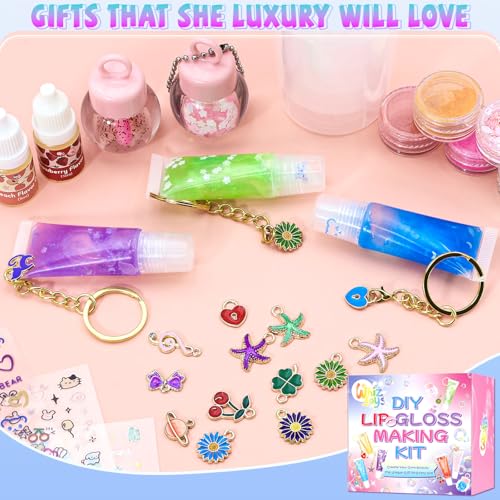 WhizToys DIY Lip Gloss Making Kit£¬Make Your Own Lip Glosses Set Clear Base Lipgloss Keychain Making Kit for Makeup Lover Beginner Teen Girl Gifts£¬Stuff for Girls 10-12