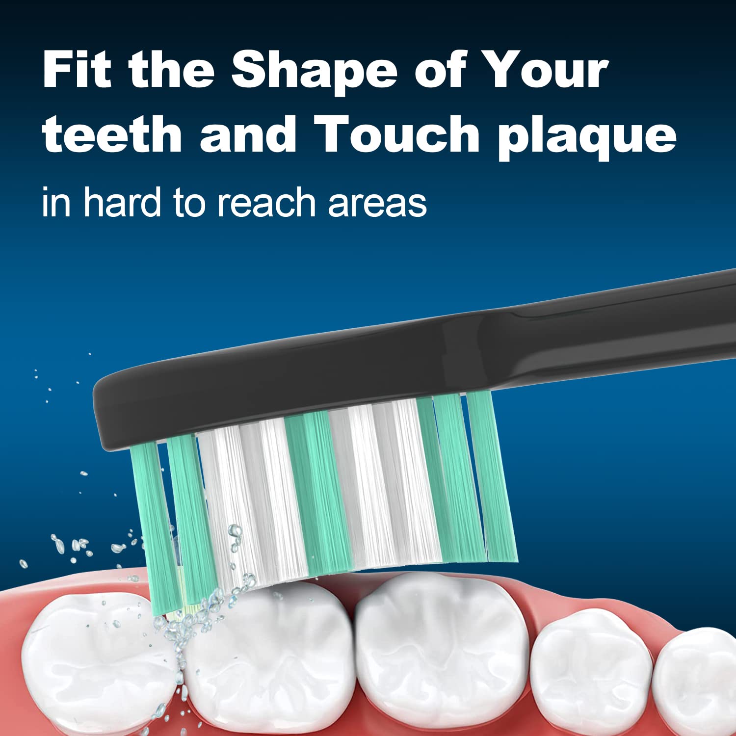 toothbrush replacement heads for are made with bristles from famous American brands, the apex of quality standard recognized in the oral care synthetic filament industry. more dense bristles, Standard sized, Slim angled neck and densely-packed are proven to reduce gingivitis up to 8x versus a manual toothbrush.