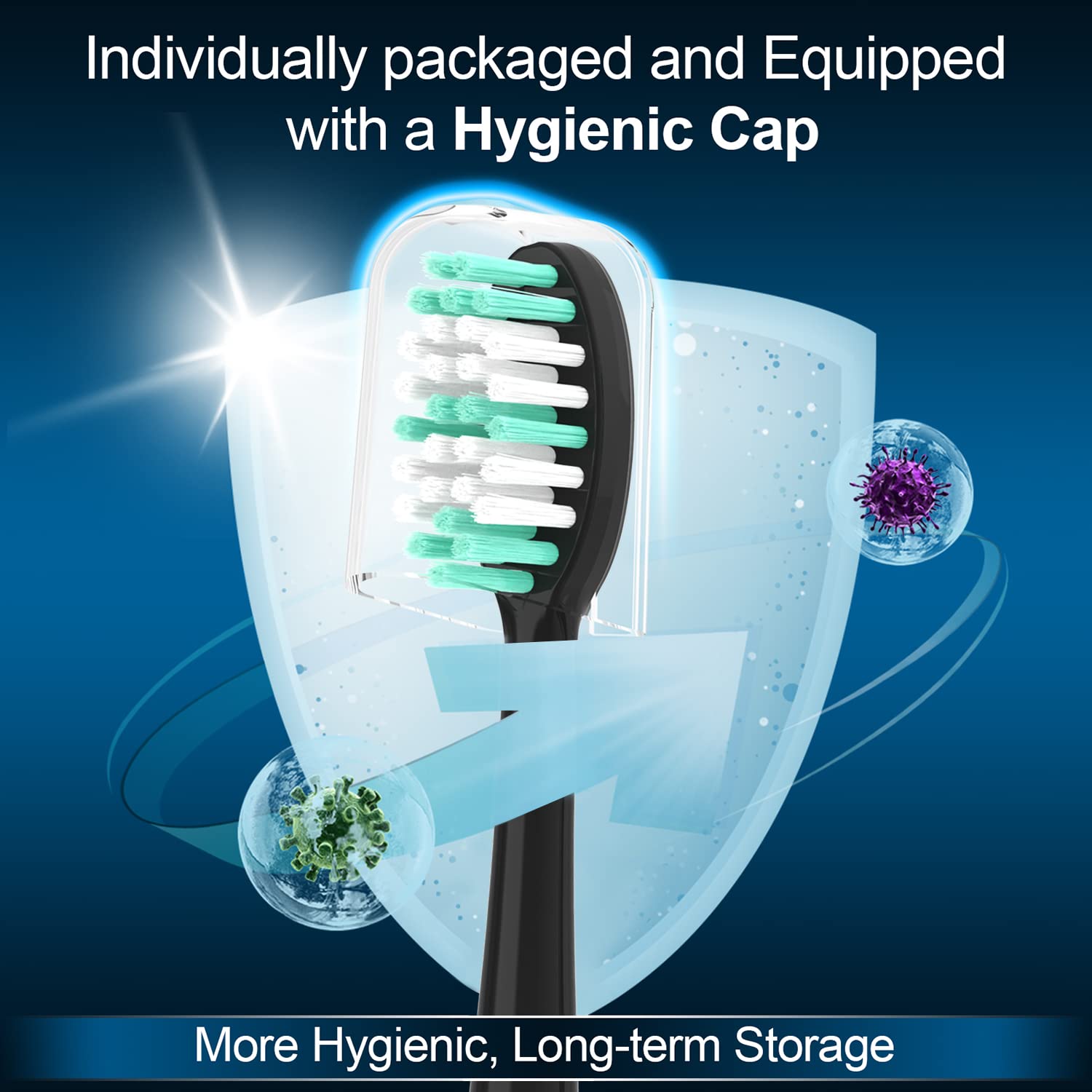 - Individually wrapped traveled - The electric toothbrush replacement heads for AquaSonic is individually sealed and comes with a transparent hygienic cap that is ideal for storage and travel.You will get 10 pack of premium toothbrush heads with 10 storage and travel caps