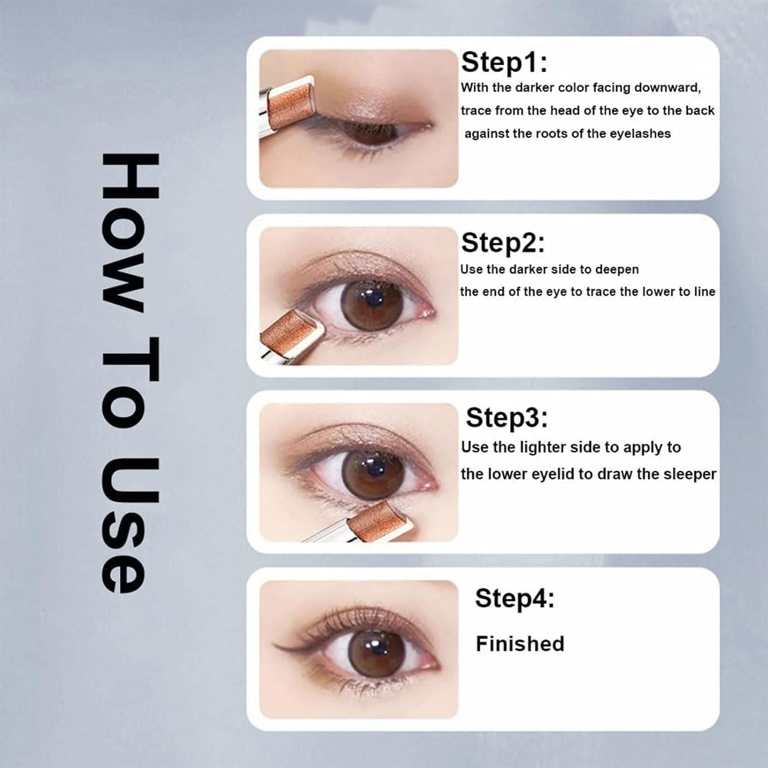 - Easy Application: This gradient eyeshadow stick has a 7:3 golden ratio refill, full of color, two different colors meet and complete two tone shadow columns, just tap to get professional gradient eyeshadow makeup