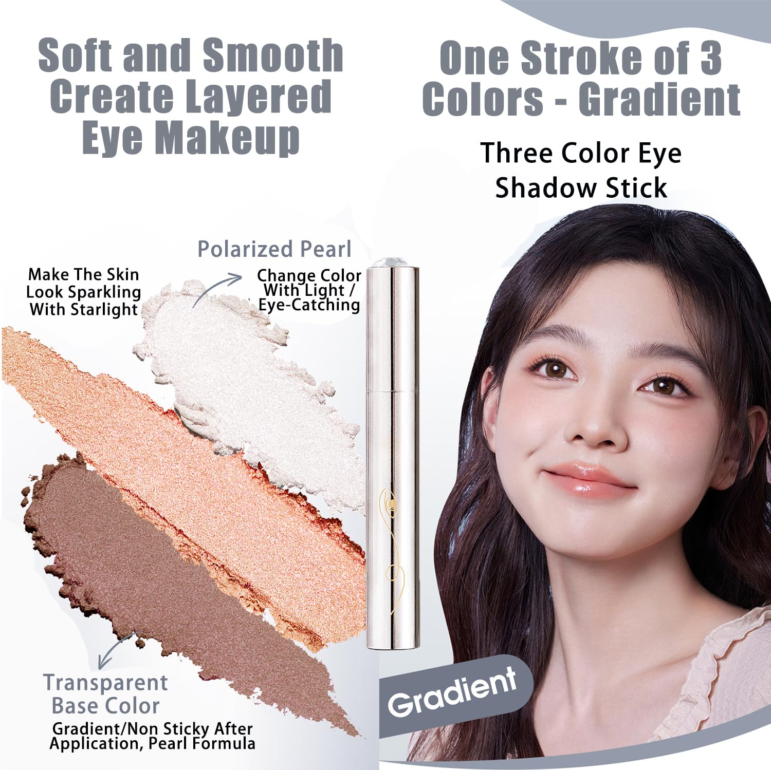 - Gradual Three-Dimensional Effect: The unique 3-in-1 design allows three complementary shades to blend easily to create a 3D effect, making your eyes look radiant all day long. The glitter eyeshadow stick can also highlight your cheekbones, nose bridge, lip tips and eye bags