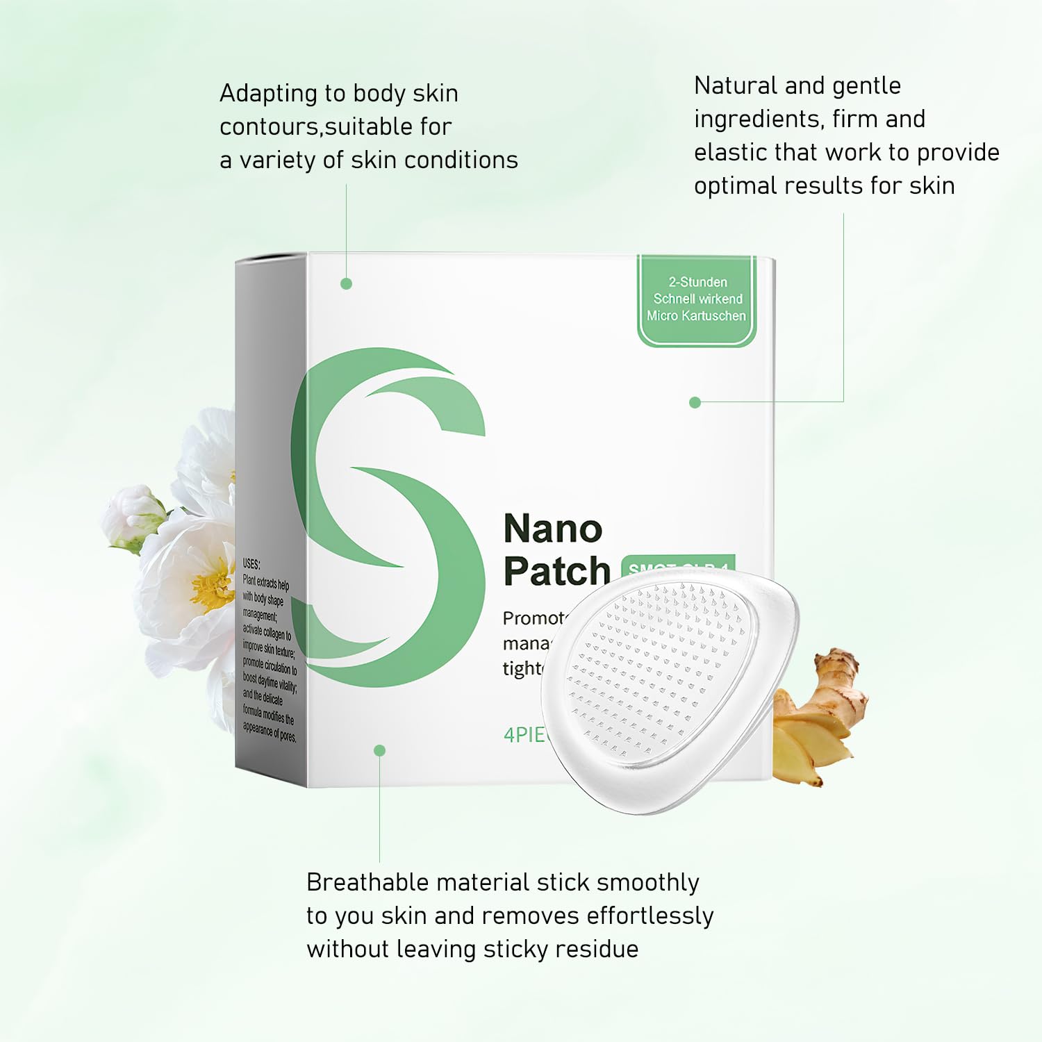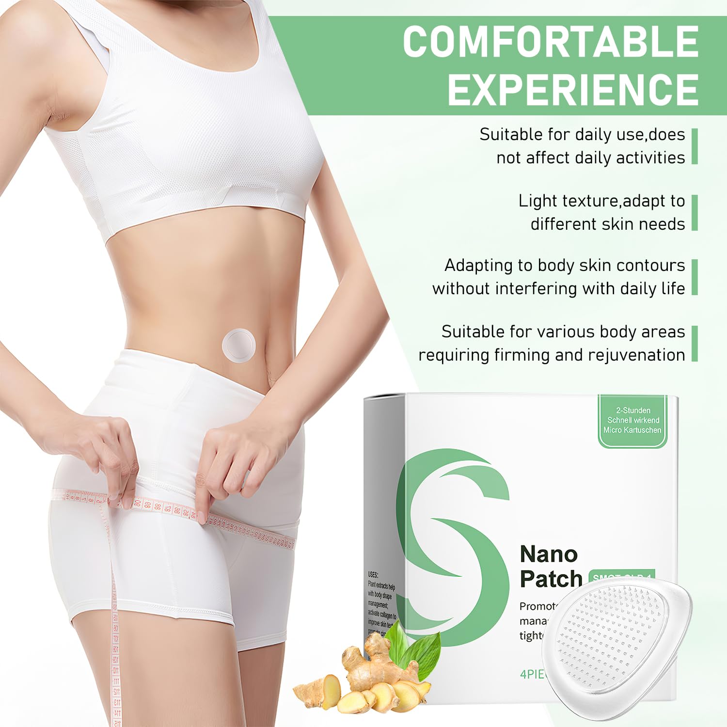 - 【Nano Patch】Advanced nano-technology patch designed to work within 2 hours for body care and skin tightening effects