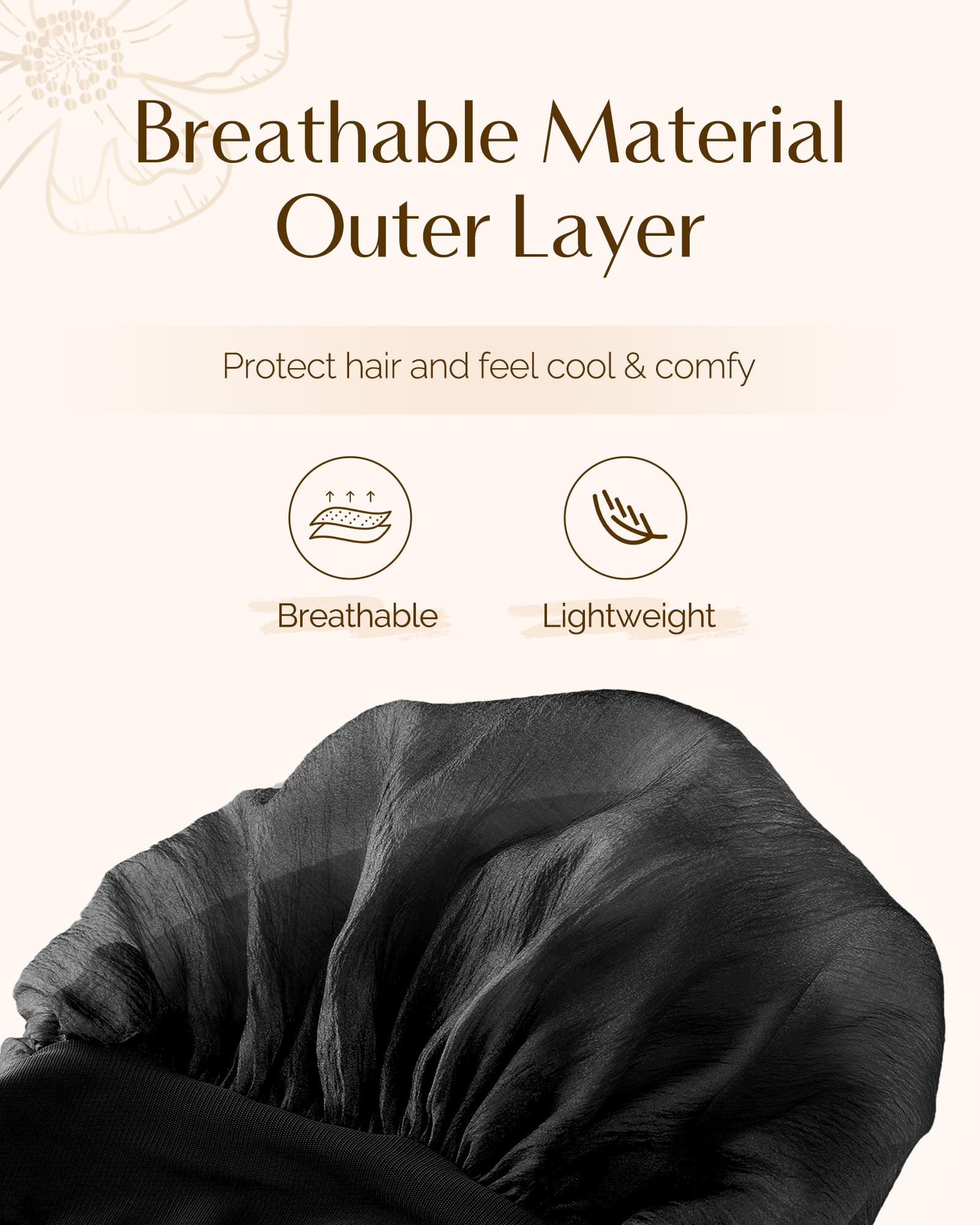 - Soft bonnet: Lightweight and unique breathable material outside, which is fashionable and brings more comfort and gentle experience for your skin and hair, ensuring a cozy night's sleep. You will feel cool and no heaviness. Good for hot summer