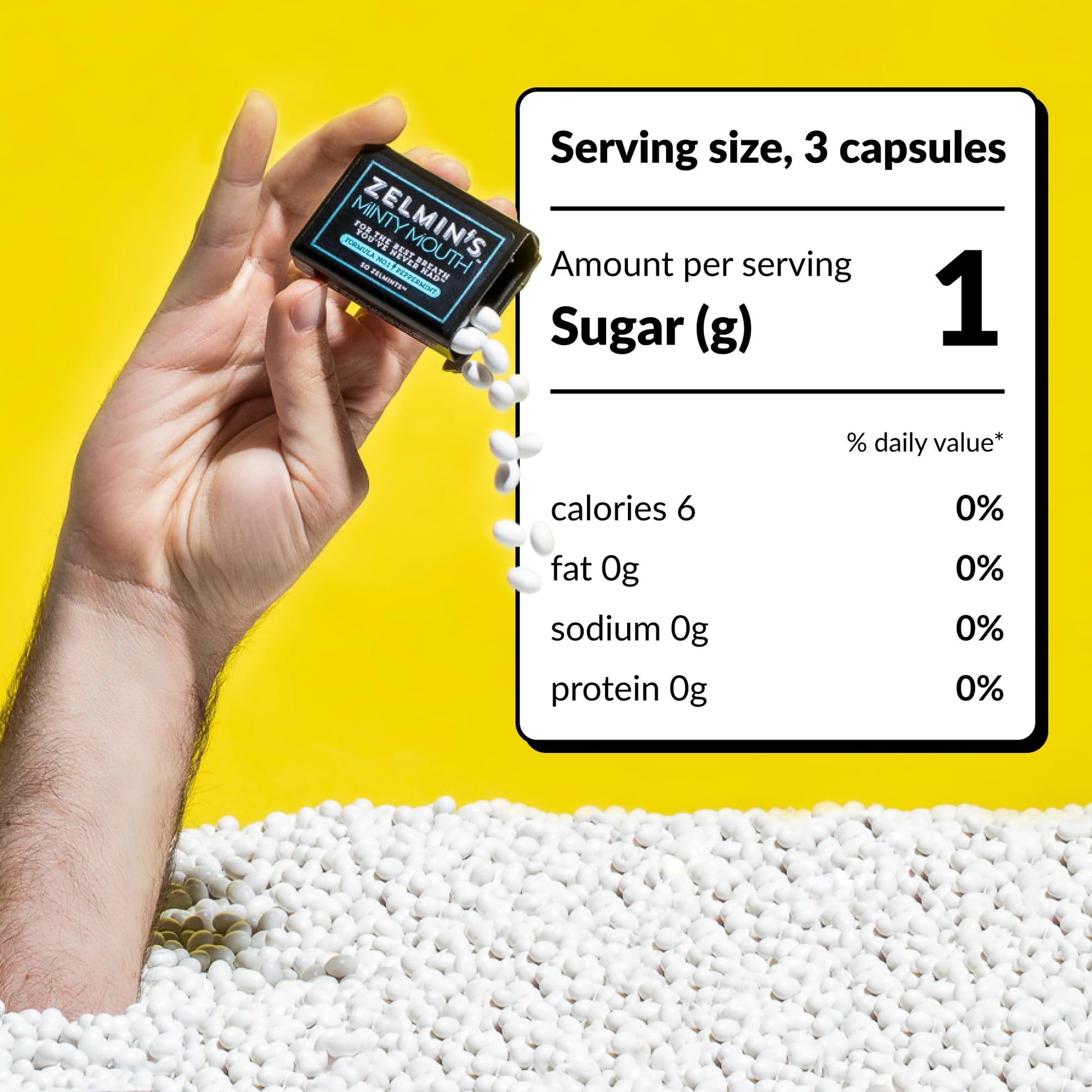 - Long-Lasting Bad Breath Protection: Upgrade your breath care routine with Zelmin's Minty Mouth Breath Freshener. Designed as a functional breath freshener, these gel capsules are specially formulated to offer instant and enduring freshness, tackling even the toughest bad breath offenders, such as garlic and onions, ensuring fresh breath for hours.