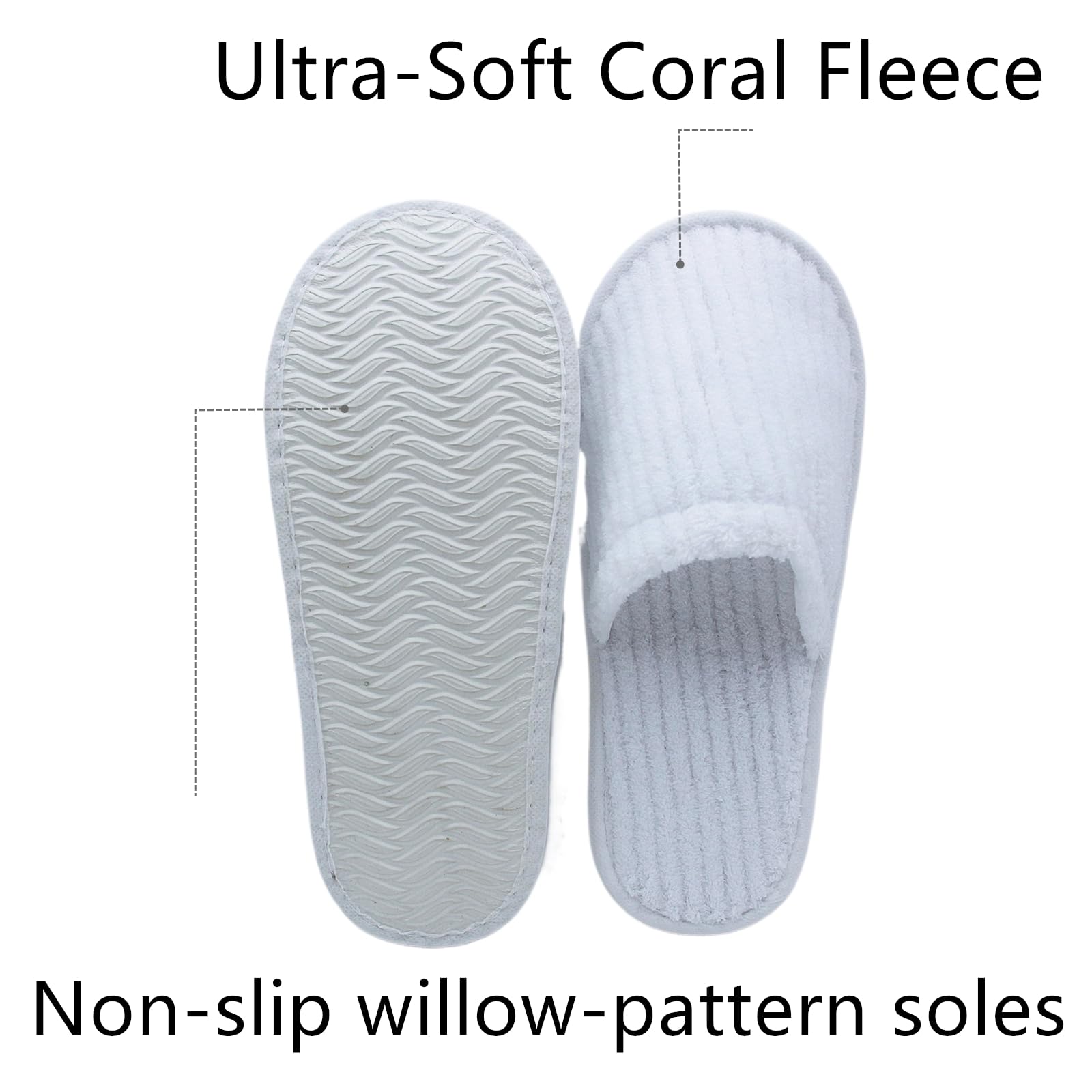 - Ultra-Soft Coral Fleece: Plush coral fleece disposable slippers with thickened EVA soles ensure comfort and safety. Each slippers are designed with closed toe, lightweight and breathable