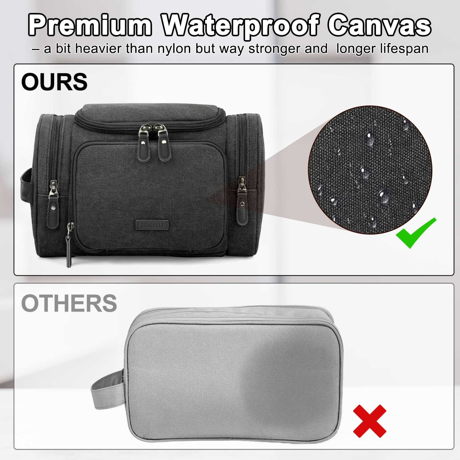 - PERFECT GIFT: ZOMFELT travel toiletry bag combines a toiletry bag, shaving kit, and makeup/cosmetic bag into one convenient solution. The perfect practical gift for fathers, husband, friends, graduates, or travelers