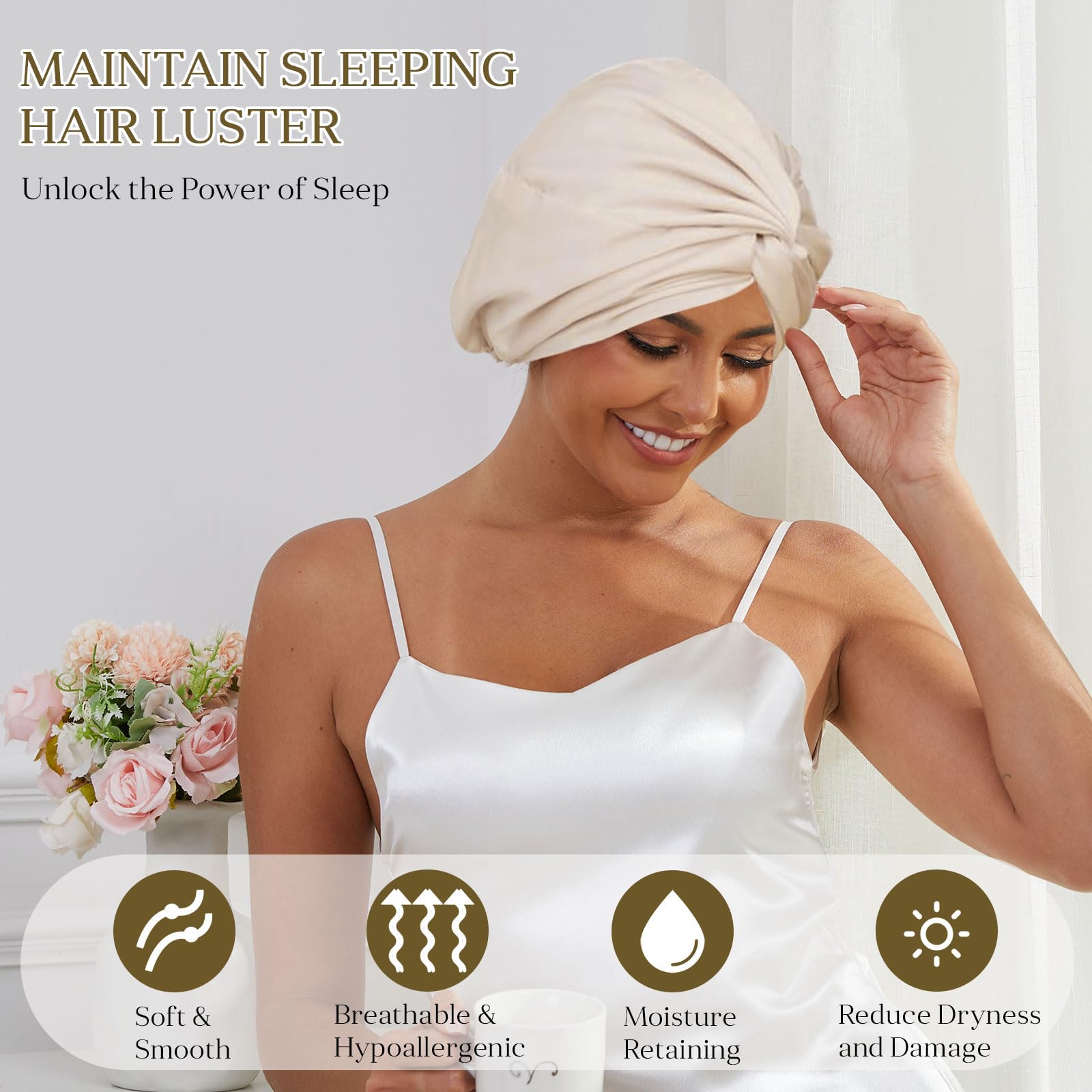 ZXYCLOPS Adjustable double-layer silk satin nightcap, suitable for wrapping hair while sleeping, for long curly hair, woven champagne color